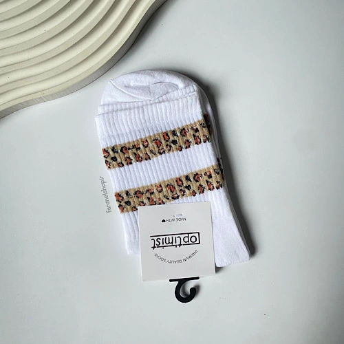 جوراب ساقدار نخ پنبه طرح لبه پلنگی