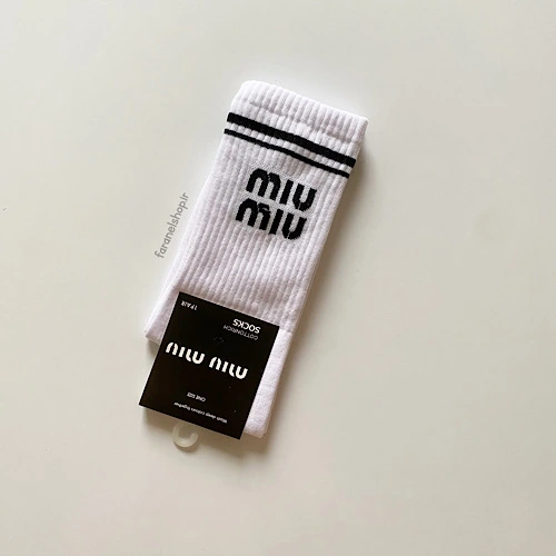 جوراب ساقدار نخ پنبه طرح میومیو (miu miu) سفید و مشکی
